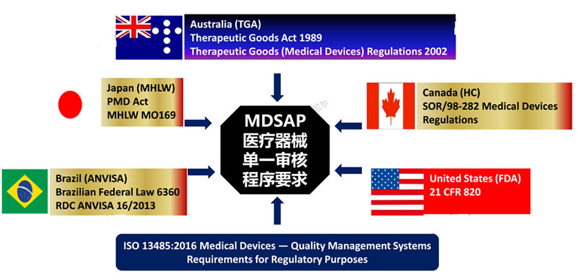 ? 服務(wù)簡(jiǎn)介MDSAP醫(yī)療器械單一審核程序(Medical Device Single Audit Program)基于美國(guó)、加拿大、澳大利亞、巴西和日本等五個(gè)國(guó)家的醫(yī)療器械管理法規(guī)而構(gòu)建而成,在ISO 13485的基礎(chǔ)上,充分覆蓋美國(guó)FDA QSR820、巴西RDC16:2013,以及日本、加拿大、澳大利亞等國(guó)的醫(yī)療器械質(zhì)量體系法規(guī)要求,并兼容上述五國(guó)主管當(dāng)局關(guān)于醫(yī)療器械的其他適用要求,如器械注冊(cè)、售后監(jiān)督、不良事件報(bào)告、產(chǎn)品召回等,目前該項(xiàng)目已經(jīng)獲得美國(guó)食藥品監(jiān)督管理局FDA、加拿大衛(wèi)生局Health Canada、澳大利亞TGA、巴西衛(wèi)生局ANVISA和日本厚生勞動(dòng)省MHLW的認(rèn)可。目前適用于五個(gè)參與國(guó)——美國(guó)、澳大利亞、巴西、加拿大、日本。